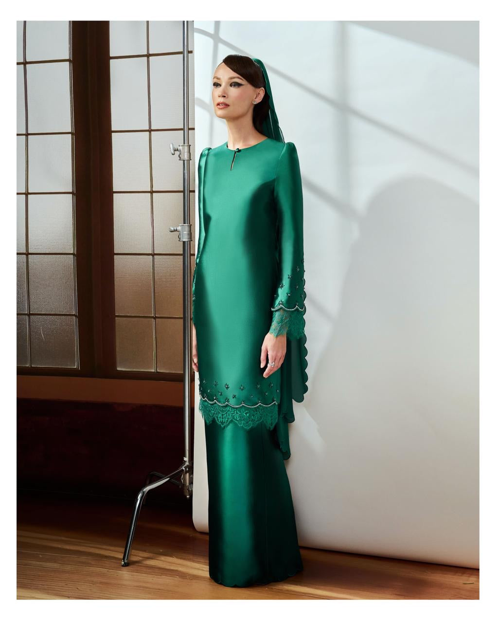 Selendang Bahu Sulam Scallop (Emerald Green) (PROMO PRICE : RM87)